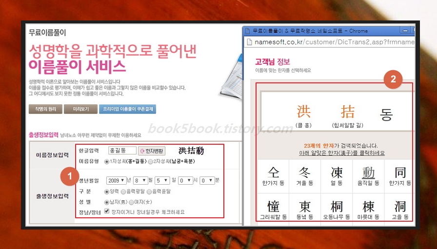 무료 한자 이름 풀이 이용하기