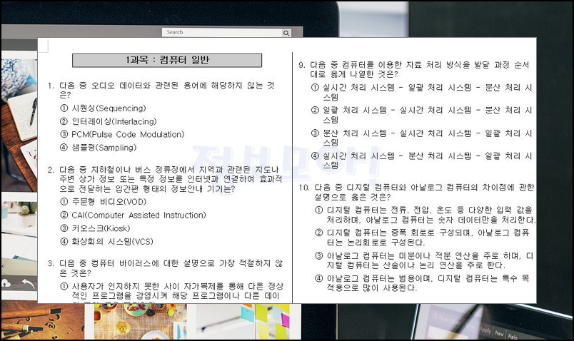 8) 해설집이 포함된 파일의 경우에는 컴화2급 필기 시험을 준비할 때에 기본서를 읽지 않을 분에게 유용합니다. 기출문제의 상세한 해설을 가지고 기본서의 일부 내용을 대체할 수 있어요.