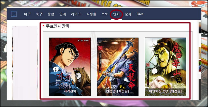 스포츠조선 사이트는 일간스포츠 무료만화 서비스와 함께 이용하면 좋아요. 서로 작품이 겹치지 않기 때문이에요.