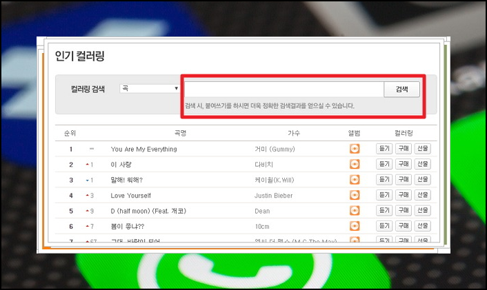 미리 들어보고 인기 음원으로 sk 컬러링 바꾸기.