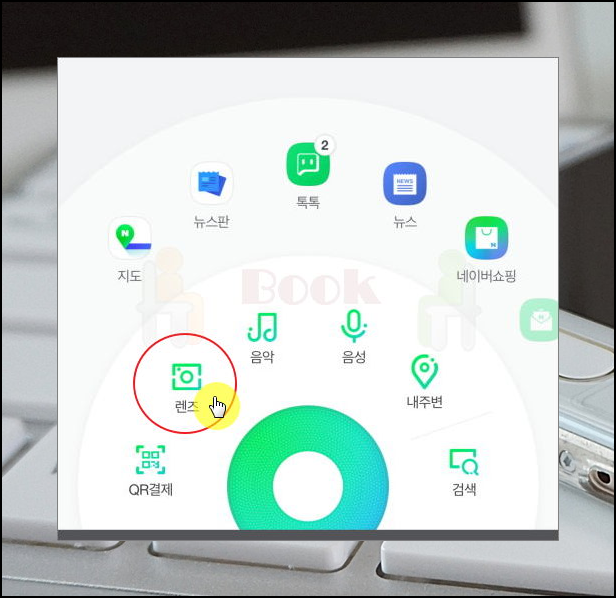 아래와 같이 화면이 바뀌면서 메뉴들이 원방향으로 펼쳐지게 되는데요. 렌즈부분이 보이시나요? 이곳으로 들어가주시면 됩니다. 가끔 아래의 QR결제와 헷갈리시는 분이 많으신데 이것은 오프라인매장 네이버페이 QR결제시 이용되는 것으로 용도가 전혀다르다고 알고 계시면 됩니다.