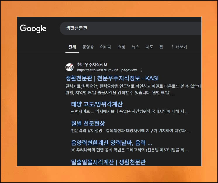 한국천문연구원이 제공하는 "생활천문관" 서비스는 다양한 천문학적 계산 도구를 제공합니다. 이 사이트에서는 "달력자료", "일출일몰 시각계산", "월별 해와 달 출몰시간", "태양 고도 및 방위각 계산" 등 여러 유용한 기능을 찾아볼 수 있습니다. 특히 우리가 주목할 것은 첫 번째 옵션인 "음력 양력 변환기"입니다.