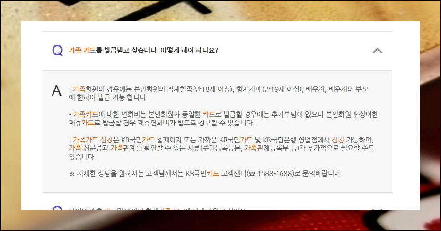 국민카드 가족카드 신청 방법 및 인터넷으로 이용 내역 확인하기.