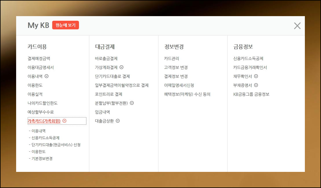 국민카드 가족카드 신청 방법 및 인터넷으로 이용 내역 확인하기.