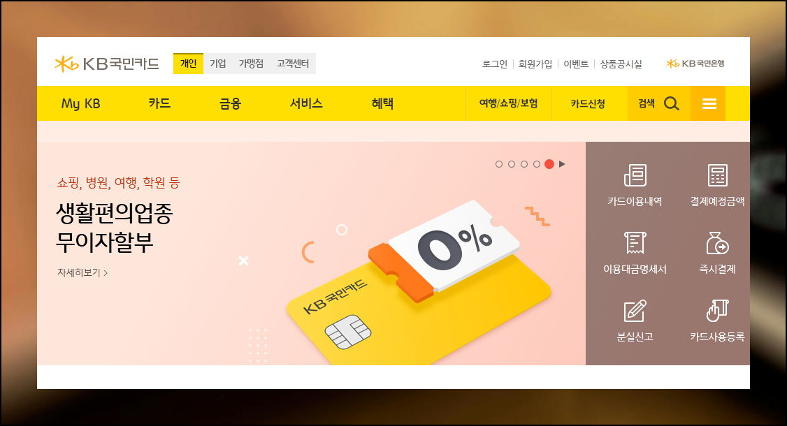 인터넷을 통해 가족카드 사용내역을 간단히 알 수 있습니다. 우선 국민카드 홈페이지에 접속해 주세요.