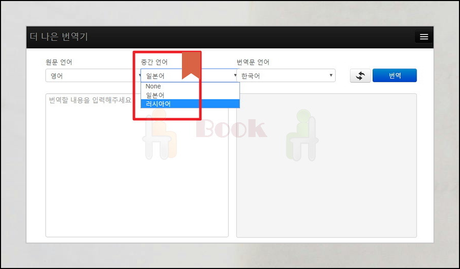 이 번역기는 "두 가지 버전"으로 제공되는데요. 중간 단계에서 일본어를 선택하느냐, 러시아어를 선택하느냐에 따라 결과가 달라집니다. 개인적으로는 일본어 버전을 추천드려요. 왼쪽 입력창에 텍스트를 넣고 변환 버튼만 누르시면 되는데, 이렇게 간단한 방식으로 원하는 영어 또는 한글 문장을 무료로 얻을 수 있습니다.