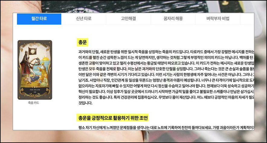 일간, 월간, 주간 타로운세 효과적으로 보기.