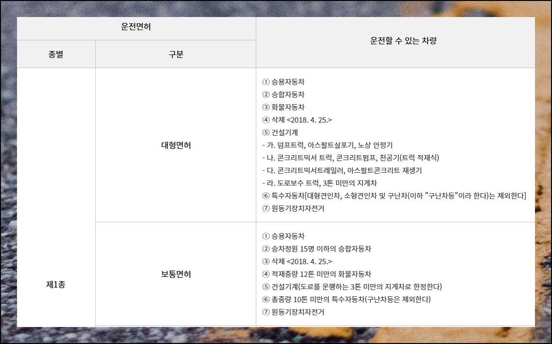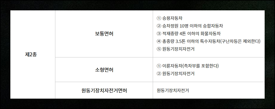 (2) 1종보통면허 운전범위 표