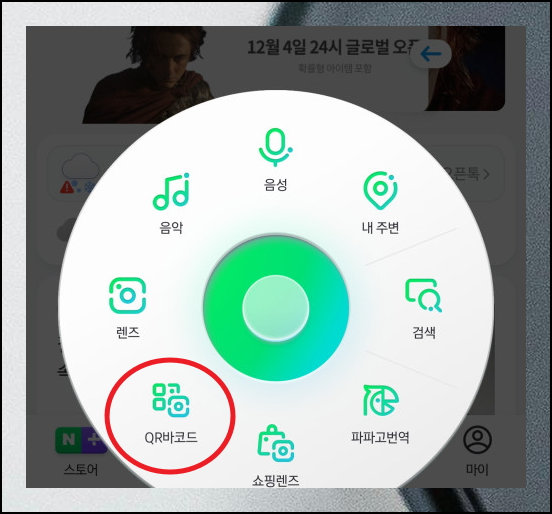 바코드 스캔은 네이버 앱으로 간단히 할 수 있습니다. 앱스토어나 플레이스토어에서 네이버 앱을 설치한 후 하단 중앙의 메뉴를 눌러주세요. 만들기 전 스캔 테스트도 가능합니다.