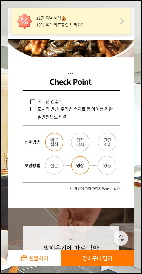 도시락을 준비할 때는 먹는 사람의 취향을 고려하는 게 가장 중요해요. 특히 다른 사람과 함께 먹을 때는 선호도 파악이 어려운데, 판매순 정렬 기능으로 종류를 살펴보면 도움이 됩니다. 장어구이, 소고기 볶음, 깜장콩, 우엉조림부터 고등어무조김, 멸치볶음, 카레, 깻잎절임까지 실용적인 반찬이 많이 있어요. 도시락에 어울리는 메뉴들을 쉽게 찾을 수 있죠.