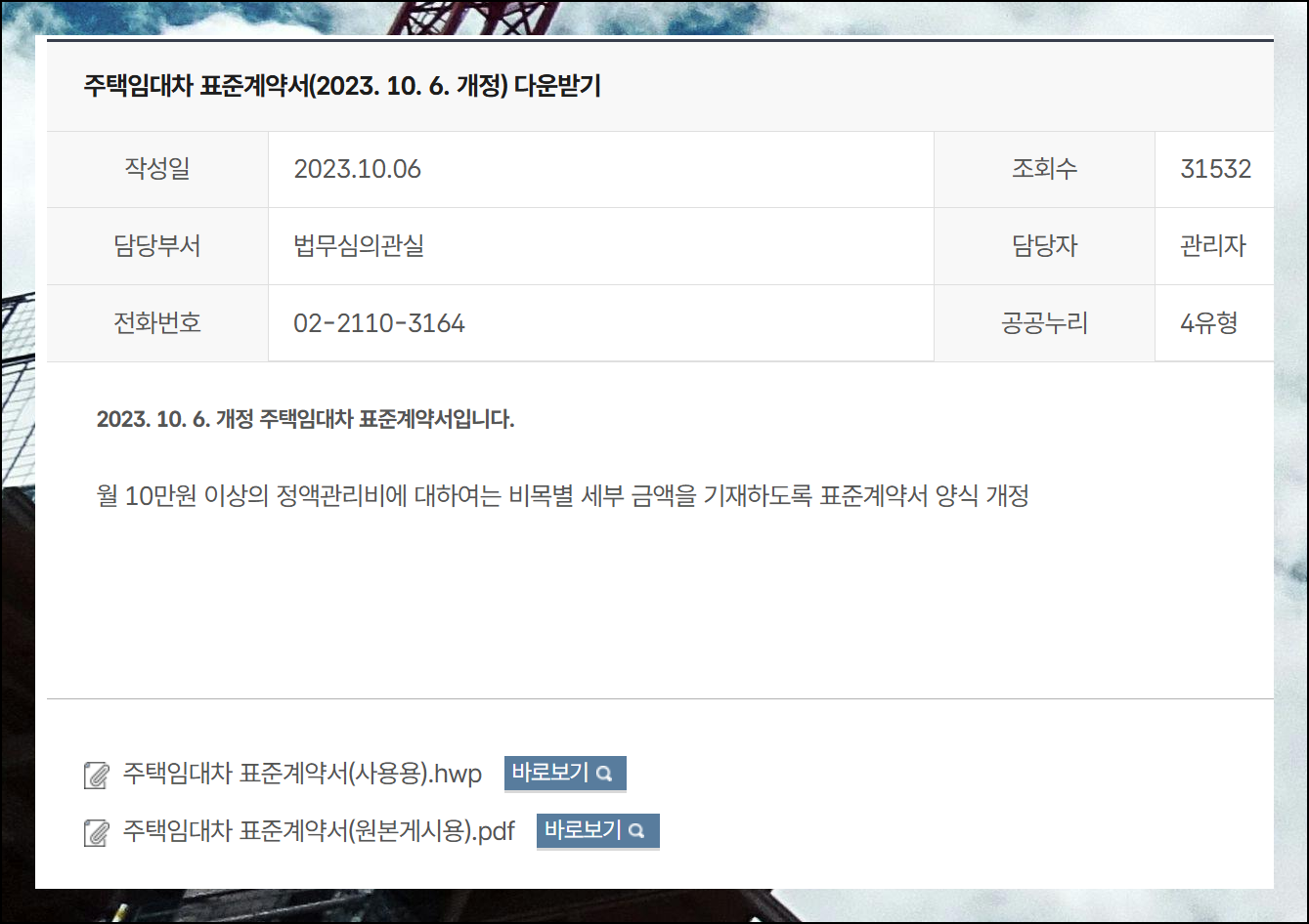 부동산 임대차와 관련된 법이 바뀌면 계약서 내용도 함께 업데이트가 필요합니다. 그래서 법무부에서 제공하는 최신 양식을 이용하시는 게 좋아요. 계약 진행에 도움이 되는 여러 가지 자료도 함께 받아보실 수 있답니다. 부동산 임대차 계약서 작성법을 잘 모르시더라도 걱정마세요. 믿을 수 있는 서식과 최신정보를 참고하여 안전한 계약을 진행하실 수 있어요.