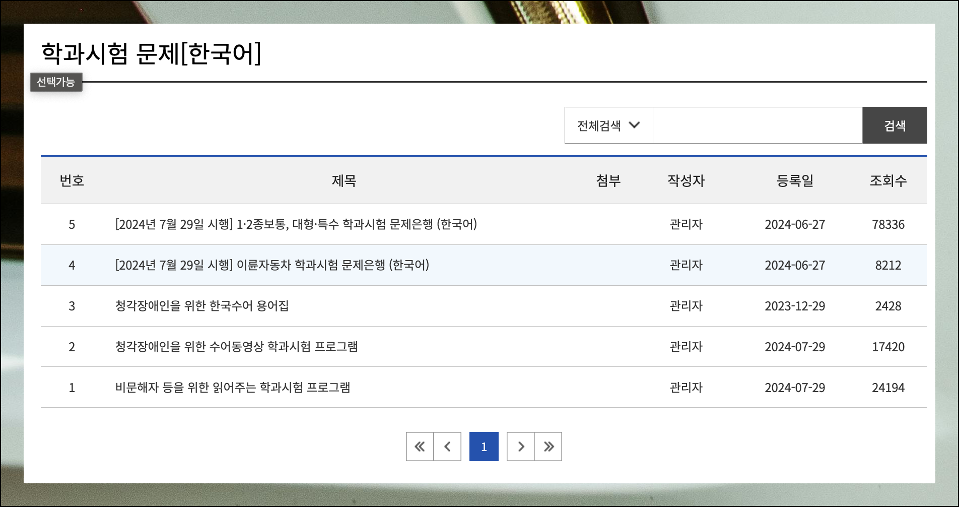 대형면허나 특수면허, 1종이나 2종 운전면허는 두 번째 게시물을 이용하시면 됩니다. 이륜차 필기시험은 첫 번째 게시물을 선택하세요. 각 면허 종류별로 구분되어 있어 편리해요.