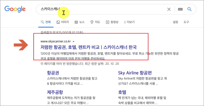 ▼ 항공권에 대한 가격을 비교할 수 있는 사이트는 여러 곳 있습니다. 제가 이용해본 결과, 대부분 비슷했습니다. 동일한 데이터를 사용하는 경우가 많기 때문입니다. 이번 시간에는 이름이 많이 알려진 사이트인 스카이스캐너를 통해 최저가 티켓을 찾아보겠습니다.