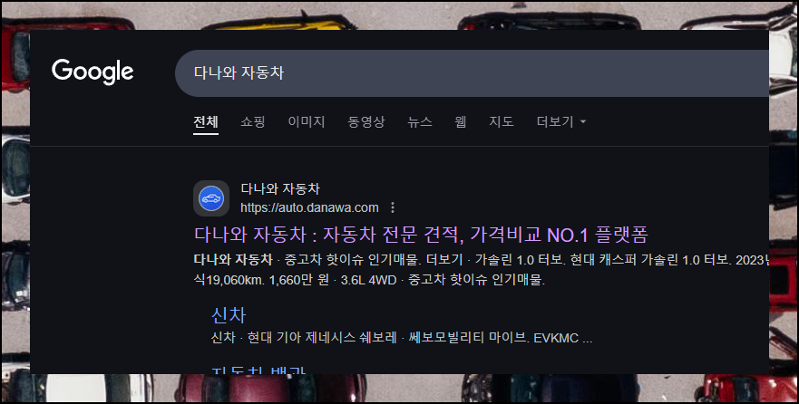다나와 자동차는 오랜 기간 신뢰할 수 있는 가격비교 서비스를 제공해왔어요. 신차는 물론 중고차 정보까지 한눈에 볼 수 있죠. 처음 방문하시는 분들도 쉽게 이용할 수 있도록 시세표 확인이 가능한 "중고차 검색" 버튼을 눈에 띄게 배치했습니다.