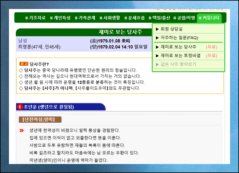사주풀이 무료 만세력 사이트, 평생운세부터 월별운세까지 한눈에 보기
