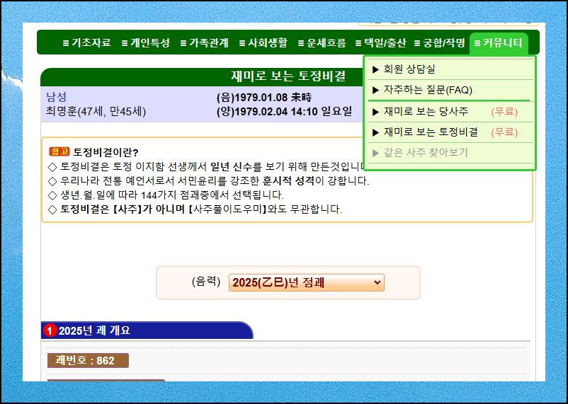 사이트 커뮤니티에서는 특별한 무료 서비스들이 기다리고 있어요. 2025년은 물론 그 이후의 만세력도 미리 살펴볼 수 있으니 앞으로의 계획을 세우는데 큰 도움이 될 거예요.