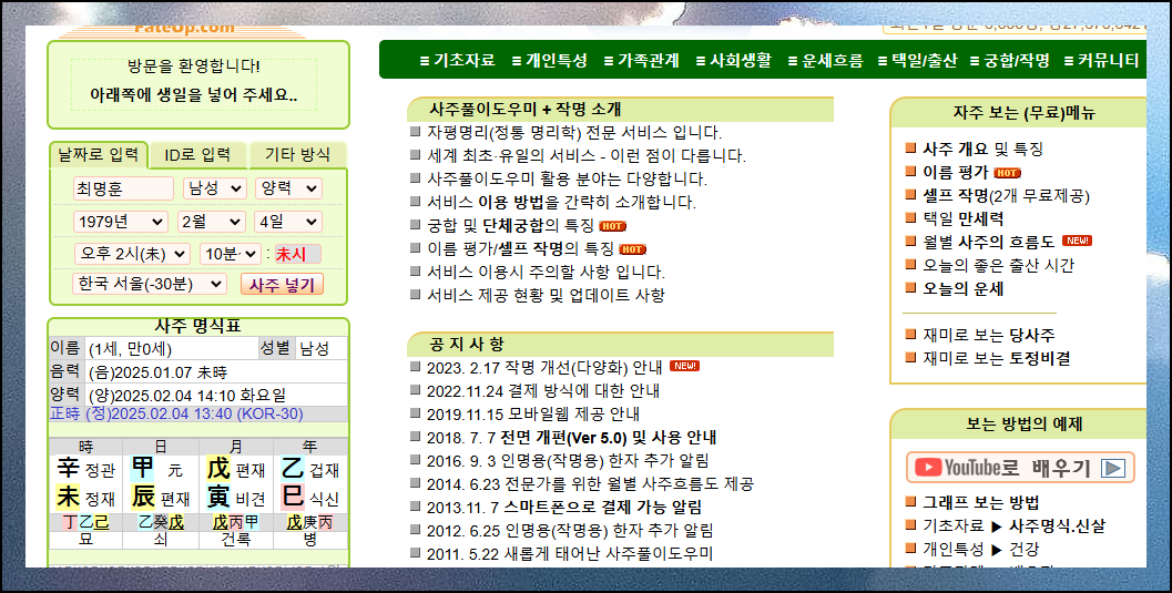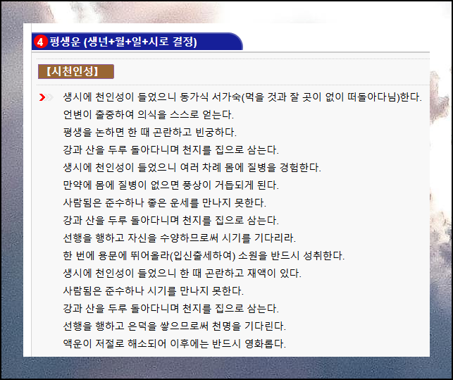 사주풀이 무료 만세력 사이트, 평생운세부터 월별운세까지 한눈에 보기