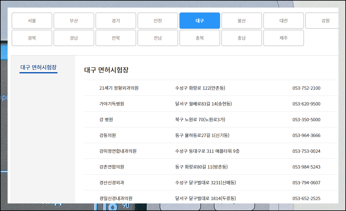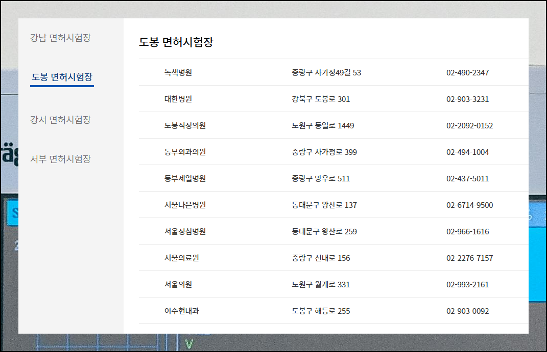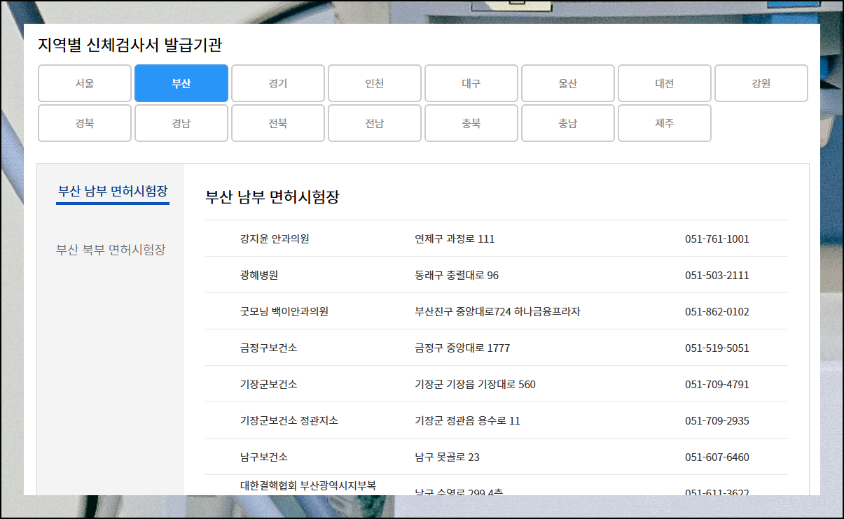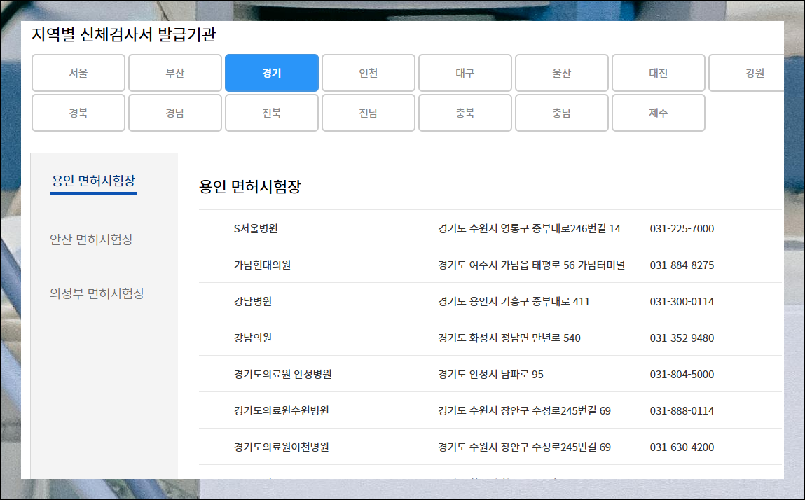 운전면허 적성검사 지정병원 신체검사서 발급기관 모두 조회하기