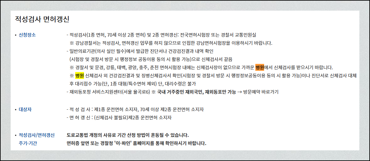 운전면허 적성검사 지정병원 신체검사서 발급기관 찾기
