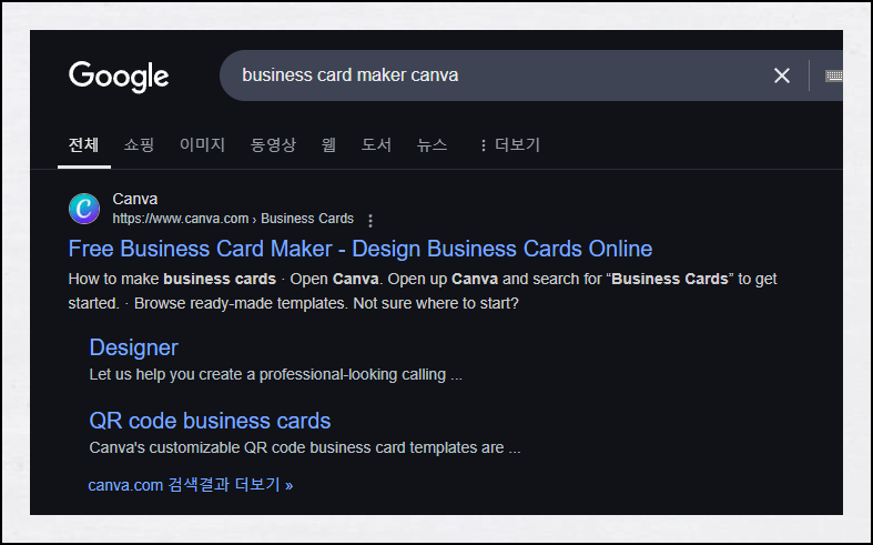 이제 CANVA라는 소프트웨어를 소개해드릴게요. Business card maker CANVA를 검색해서 접속해보세요.