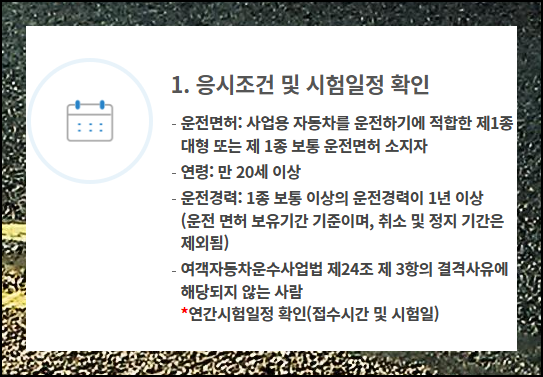 1종 대형 면허나 보통 면허를 소지한 분들만 응시가 가능해요. 운전 경력은 1년 이상이어야 하고, 연령은 20세가 넘어야 합니다. 평가를 보기 위해서는 수수료도 준비해야 하니 잊지 마세요. 여러분의 성공을 위해 꼭 필요한 준비사항들을 점검해보세요.