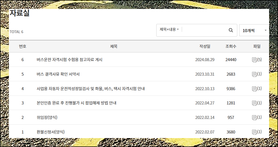 공식 포털에서 [자료실] 메뉴를 찾아보세요. 이곳에는 최신 교재와 운전자격 시험문제가 모두 마련되어 있습니다. 두 가지를 함께 학습하면 합격 가능성이 훨씬 높아져요.