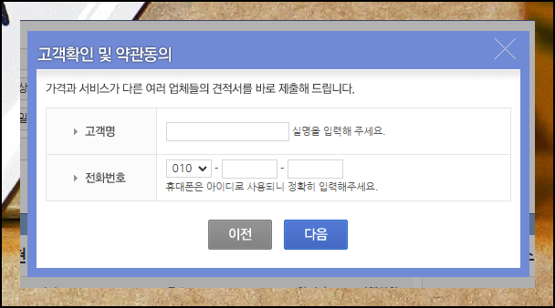 고객 정보를 기입하고 [다음] 버튼을 누르면 여러 업체의 사무실 이사 조건을 한 번에 비교할 수 있습니다. 자신의 환경에 가장 적합한 업체를 찾아 적절한 가격으로 진행해보세요. 사무실 이전 시 발생하는 비용과 서비스 내역을 꼼꼼히 비교하면 만족스러운 결과를 얻을 수 있을 겁니다.