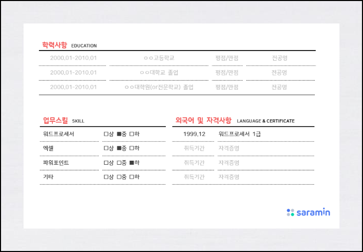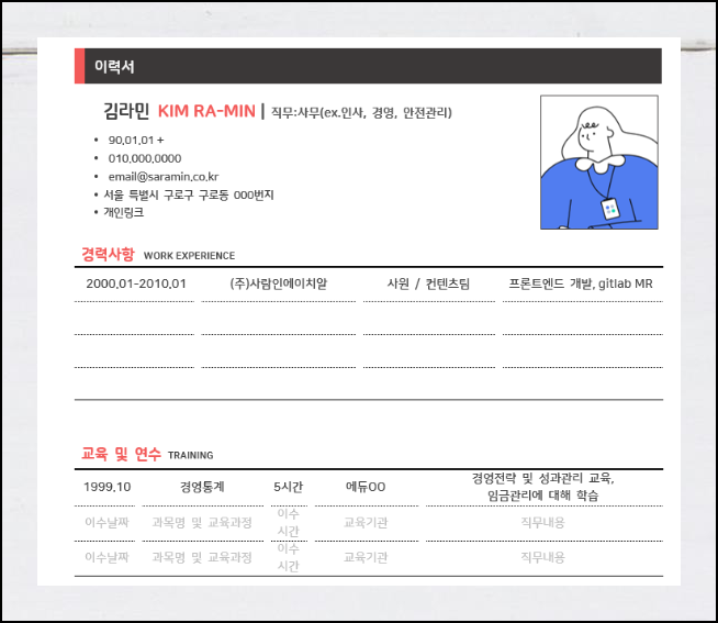 직접 살펴보고 자신에게 맞는 것을 선택하면 됩니다. 이렇게 다운로드한 양식은 본인의 상황에 맞게 입력하거나 수정하기만 하면 돼요. 디자인 면에서 퀄리티가 높은 것을 사용하면 인사담당자의 눈길을 끄는 것도 가능합니다.