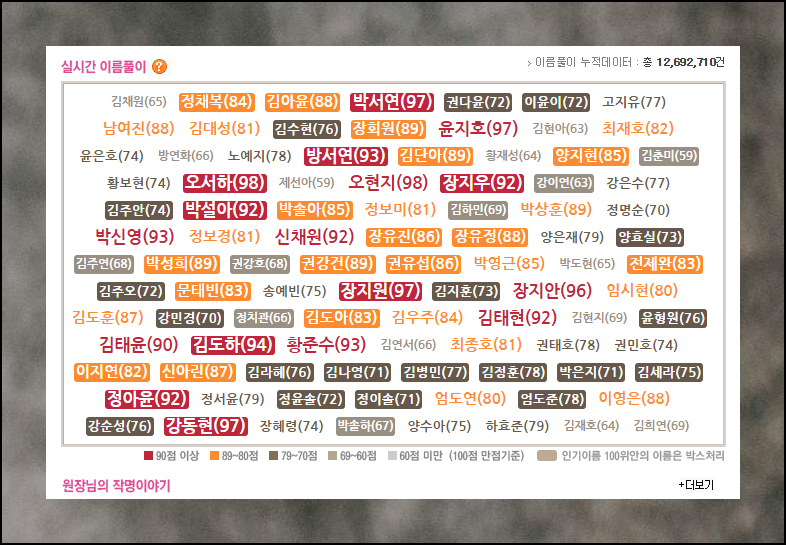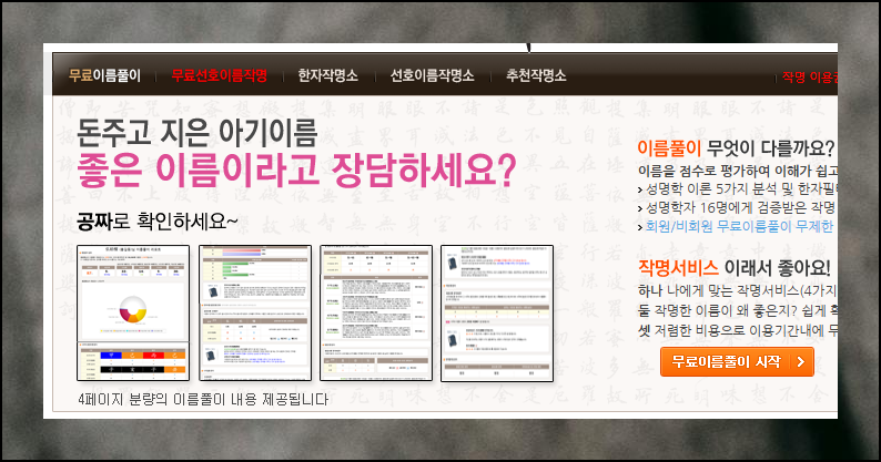 무료 온라인 작명 서비스를 이용하면 되는데요. 성명학 기준으로 높은 점수를 받는 성명을 받아볼 수 있습니다. 여기에 쓰이는 한자도 포함해서요.