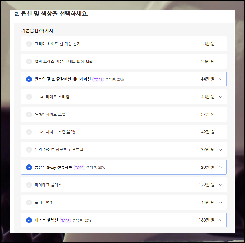옵션 선택은 신중해야 해요. 차량 출고 후에는 변경이 불가능하니까요.