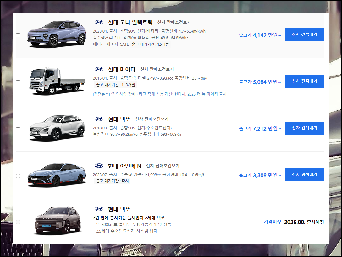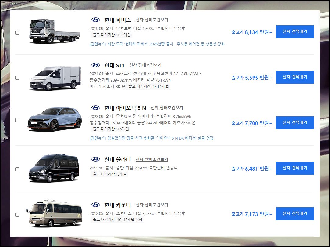 | 현대 상용차 홈페이지 시세 보기 (1) | 2025.03.02 |