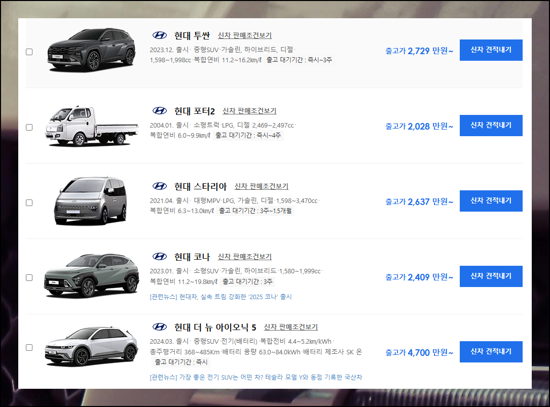 자동차 구매를 고민하시는 분들은 수많은 차량 종류와 가격 등의 정보 속에서 어떤 것이 정확한지 판단하기 어려우실 거예요. 현대차 종류 가격표를 한눈에 확인할 수 있는 다나와 자동차 사이트를 활용하면 이러한 고민을 해결할 수 있습니다.
