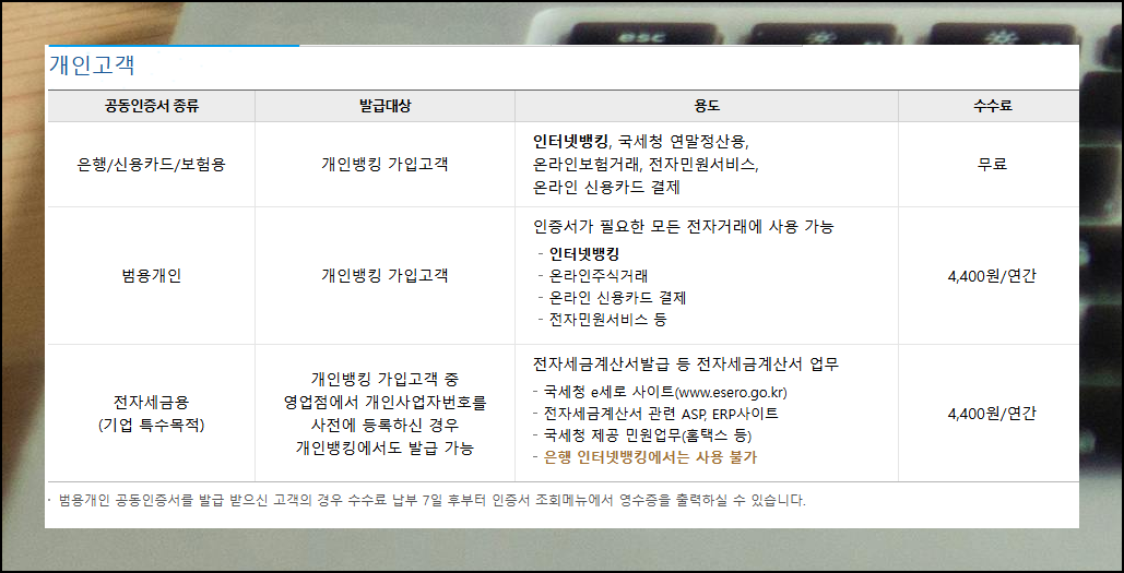 여러 곳에서 두루 사용하고 싶다면 '범용' 상품이 좋은 선택이에요. 다만, 범용 공인인증서는 매년 4,400원의 수수료가 발생한다는 점 기억하세요.