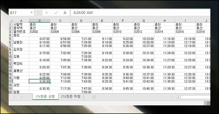 시간표를 살펴보는 것은 여행의 첫 단계예요. 잘 정리가 된 엑셀 문서를 확인하면 효율적인 계획을 쉽게 세울 수 있습니다. 각 역의 도착 시각을 정확히 알 수 있어 여행이 한결 수월해져요.