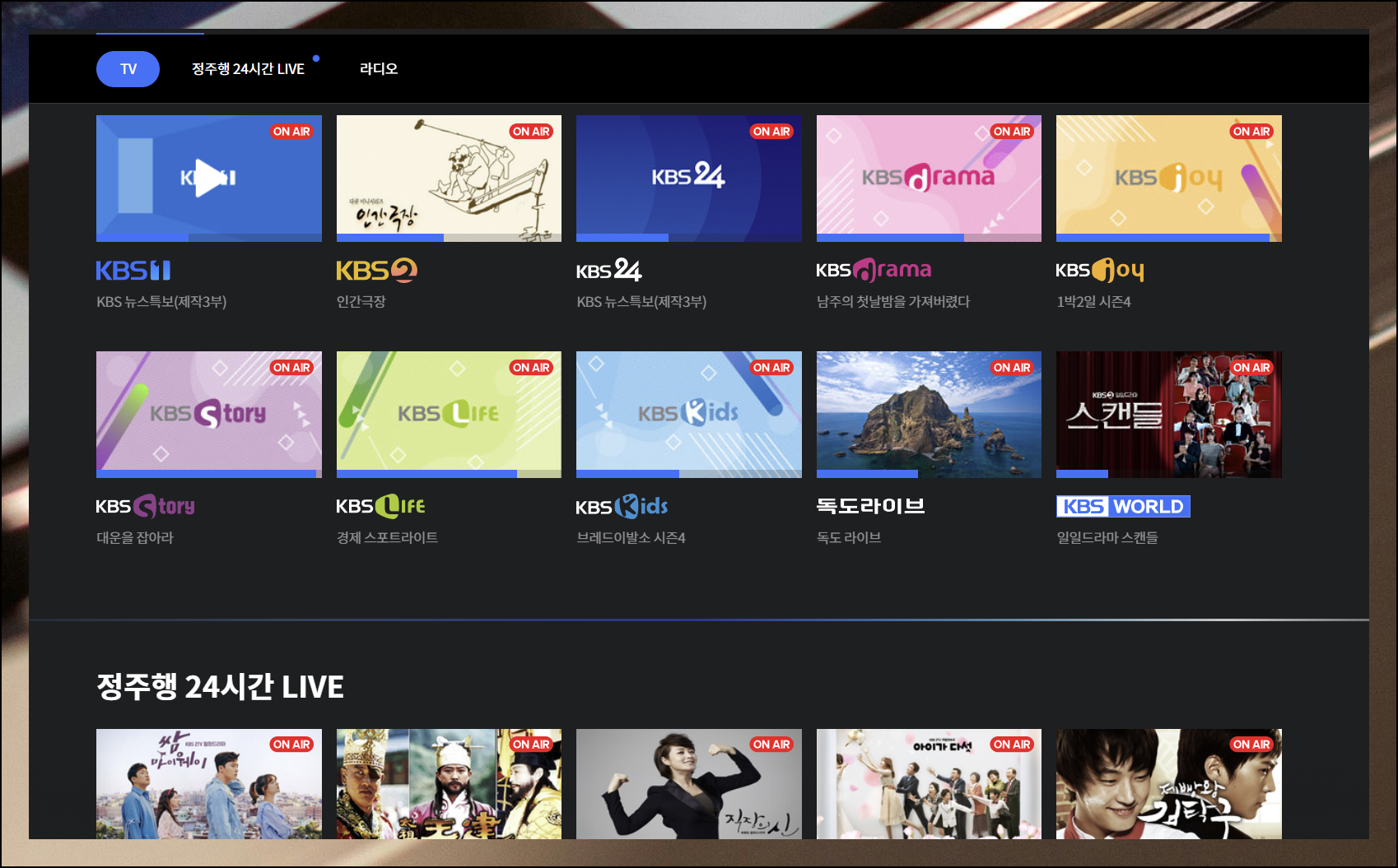 편성표를 살펴보다 보면 특정 프로그램에 온에어 버튼이 표시되는 경우를 볼 수 있어요. 이 버튼은 현재 TV에서 실시간으로 방송 중일 때만 나타나는 표시입니다. 이 버튼을 클릭하면 바로 해당 프로그램을 시청할 수 있어요.