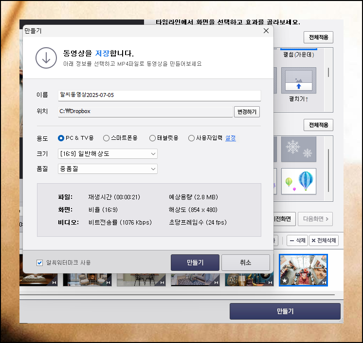 (8) 완성된 영상 저장하는 방법