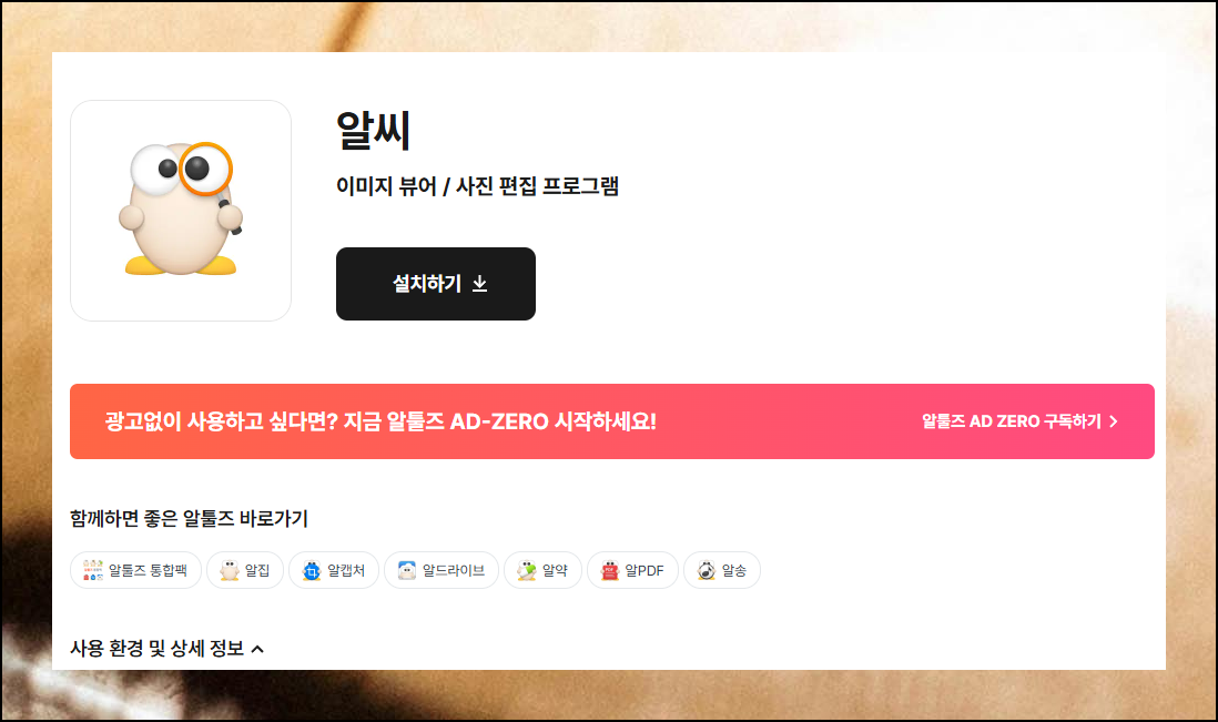 사진을 동영상으로 만드는 방법을 따라하려면 전용 도구가 필요합니다. 무료로 사용할 수 있는 "알씨" 프로그램을 추천 드려요. 많은 분들이 이미지 편집 프로그램으로만 알고 계시지만, 실제로는 영상 제작 기능도 훌륭하게 갖추고 있습니다. 알툴즈 공식 홈페이지에서 다운로드 받아 설치해보세요.