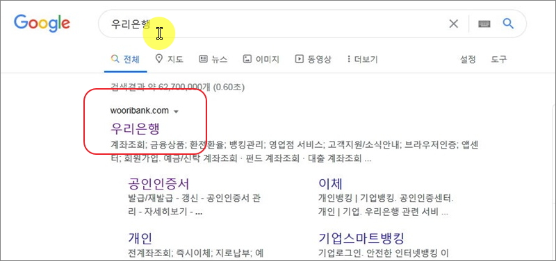 ▼ 휴대폰에서 이전 단계까지 진행한 상태에서 컴퓨터를 켭니다. 컴퓨터로 본인이 사용하는 은행 사이트에 접속합니다. 당연히 공인인증서를 이용하여 로그인을 하거나 인터넷 뱅킹을 사용하는 은행을 선택해야 합니다.