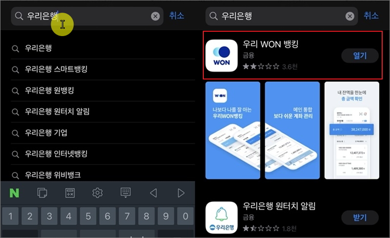▼ 해당 방법을 사용하기에 앞서 선행되어야 할 일이 있습니다. 컴퓨터로 공인인증서를 발급 받은 상태이어야 합니다. 그래야 휴대폰으로 등록이 가능하기 때문입니다. 준비가 되었다면 스마트폰으로 은행 어플을 설치합니다. 공인인증서를 사용하여 로그인을 하던 은행을 선택하면 됩니다.