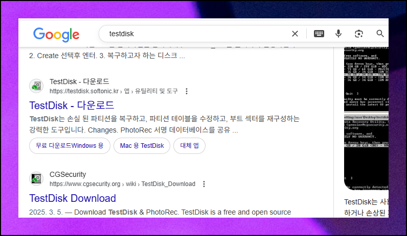 이번에 소개할 도구는 무료로 사용할 수 있는 오픈소스 데이터 복구 소프트웨어입니다. "TESTDISK"라는 프로그램인데요. 무료로 사용할 수 있음에도 복원율이 높아서 많은 사람들이 이용하고 있어요. 저도 이것만 사용합니다.