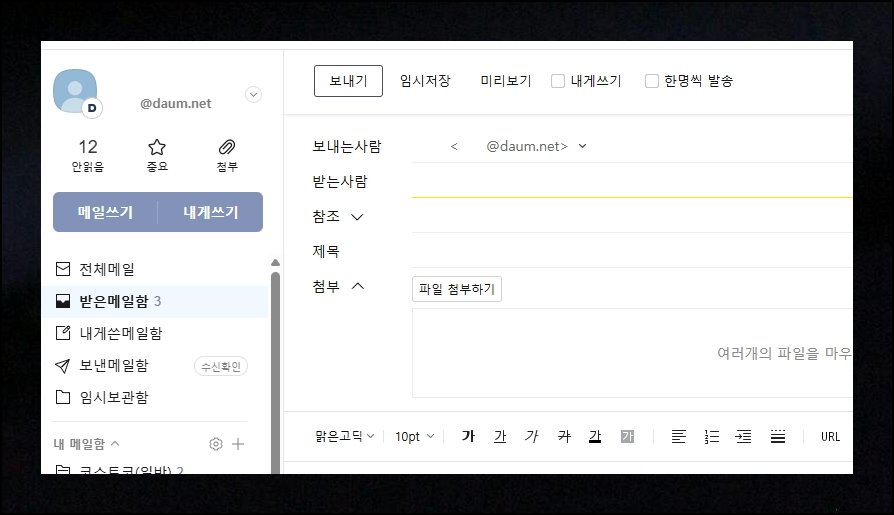 다음 웹사이트에 접속한 뒤 메일 서비스 페이지로 이동해보세요. 좌측 메뉴에서 "내게쓰기" 옵션을 클릭하면 됩니다. 이 기능으로 본인의 다음 이메일주소를 바로 확인할 수 있어요. 복잡한 절차 없이 몇 초 안에 원하는 정보를 얻는 효율적인 방법입니다.