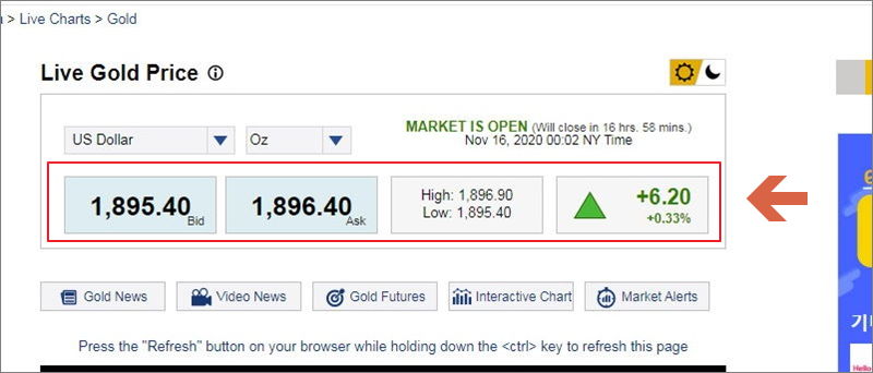 살다 보면 집에 금반지나 금니와 같이 금으로 된 것들을 한 두개 정도 보유하게 됩니다. 팔기에도 뭐하고, 그렇다고 계속 가지고 있기도 뭐한 상황이 있죠. 이럴 때 현시세로 가치가 어느 정도 되는지 확인해보면 좋습니다. 세계적으로 이용하고 있는 실시간 국제 금시세 조회 서비스를 이용하면 됩니다. 누구나 무료로 이용할 수 있고, 영어를 몰라도 쉽게 이용할 수 있습니다. 더불어 국내에서는 금시세가 얼마인지 금일 기준으로 알려드리겠습니다.