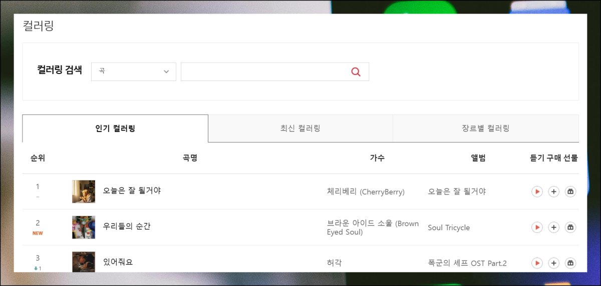 차트 상위곡 말고도 개인적으로 좋아하는 아티스트의 노래를 검색해서 설정할 수 있어요. 유명한 가수의 최신곡으로 지정하면 전화를 받는 상대방에게도 센스있다는 인상을 줄 수 있습니다. 컬러링은 자신만의 개성과 음악 취향을 보여주는 효과적인 수단이니까, 본인 이미지와 잘 맞는 곡을 고르는 것이 중요해요.
