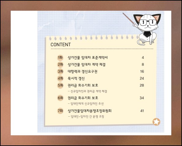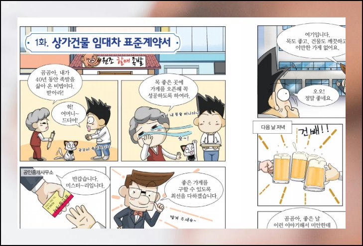 상가건물 임대차보호법을 만화로 쉽게 배울 수 있는 자료가 있습니다. 어려운 법률 용어가 그림과 함께 쉬운 말로 설명되어 있어요. 재미있게 읽으면서 필요한 법률 지식을 자연스럽게 익힐 수 있습니다.