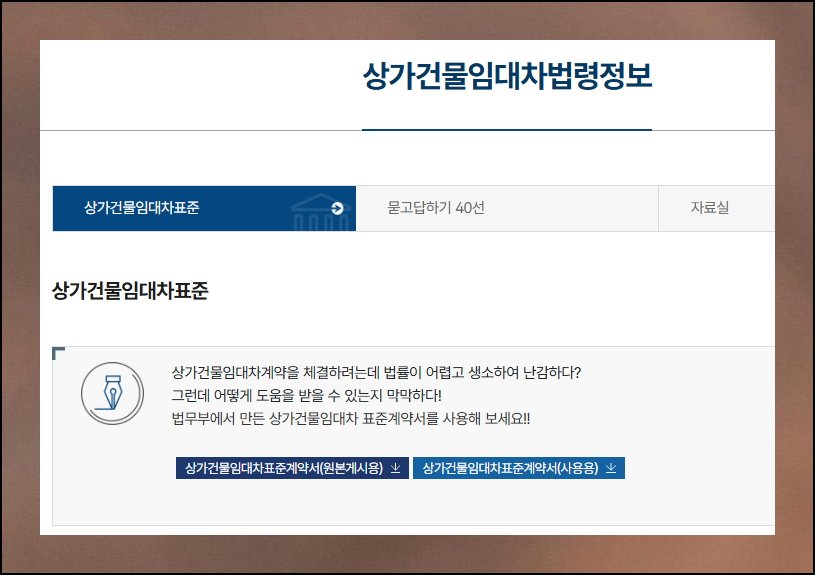 상가 건물 무료 임대차 계약서도 필요하신가요. 상가 건물 임대차 법령정보 메뉴로 이동하면 받을 수 있습니다. 주택용과 동일하게 사용용 서식을 선택해서 다운로드하시면 돼요. 다만 상가용은 관리비 작성 요건이 주택용보다 더 세밀하게 규정되어 있으니 작성할 때 주의하세요.