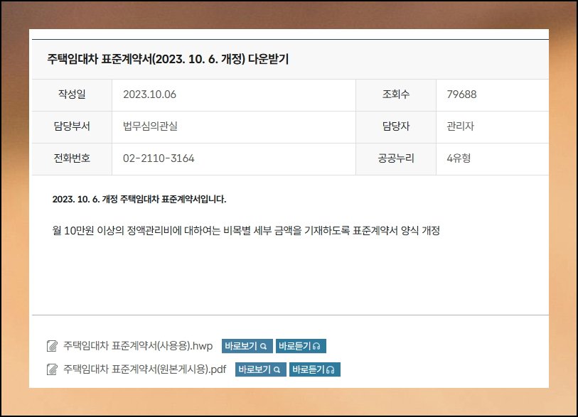 공신력 있는 기관에서 제공하는 만큼 최신 법령이 반영되어 있고, 관리비 항목도 꼼꼼하게 작성할 수 있도록 개선되었습니다. 무료로 다운로드할 수 있는 공식 양식이니 안심하고 사용하실 수 있어요. 지금부터 무료 임대차 계약서 서식을 어떻게 받을 수 있는지 차근차근 알려드리겠습니다.