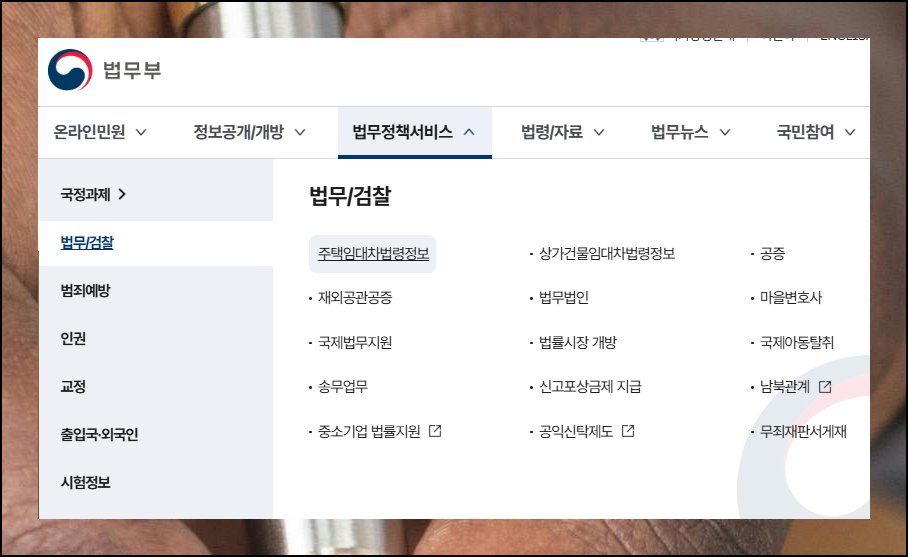 공식 자료가 어디 있는지 찾기 어려우신가요. 법무부 홈페이지에 접속하신 후 법무정책서비스 메뉴를 먼저 클릭해보세요. 그다음 법무검찰 항목으로 들어가면 됩니다. 이 순서대로 따라가시면 원하는 무료 임대차 계약서를 쉽게 찾을 수 있어요.