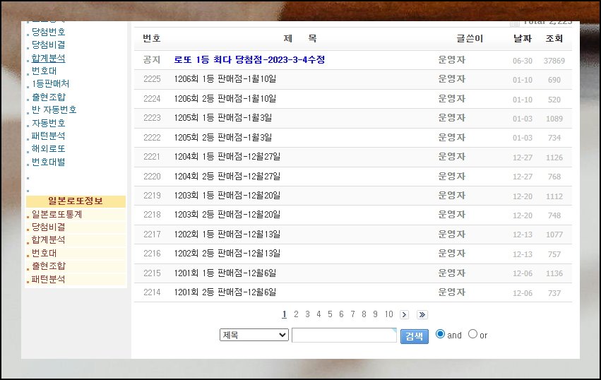 웹사이트에 접속하면 여러 가지 메뉴가 보여요. 화면 중앙 영역을 보시면 로또 관련 항목을 쉽게 찾을 수 있습니다. 로또 게시판이라는 메뉴를 클릭하세요. 그러면 원하는 기능 페이지로 바로 이동해요.