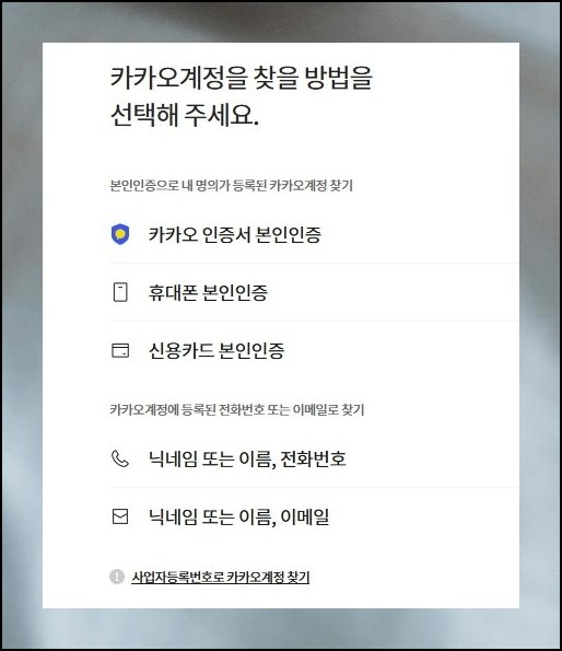 공동인증서를 쓰거나 모바일 기기를 통한 인증 절차를 밟으면 됩니다. 별명이나 성명에 연락처를 조합해 내 계정을 식별하는 것도 가능해요. 아이디와 비밀번호를 되찾았다면 앞서 안내한 카카오 경로로 이메일 찾기를 진행하면 돼요.