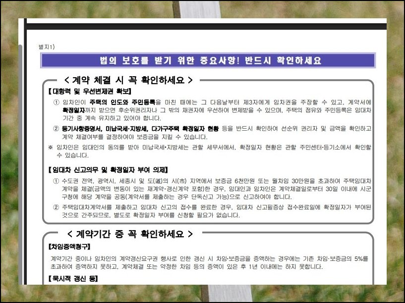 계약서 하단 영역에는 세입자의 권익과 직결되는 임대차 관련 사항들이 세밀하게 기재되어 있어요. 이 부분은 향후 분쟁에서 자신을 지키는 근거가 됩니다. 대수롭지 않게 넘기면 손해를 볼 가능성이 있으니 꼼꼼히 읽어보는 게 중요해요.